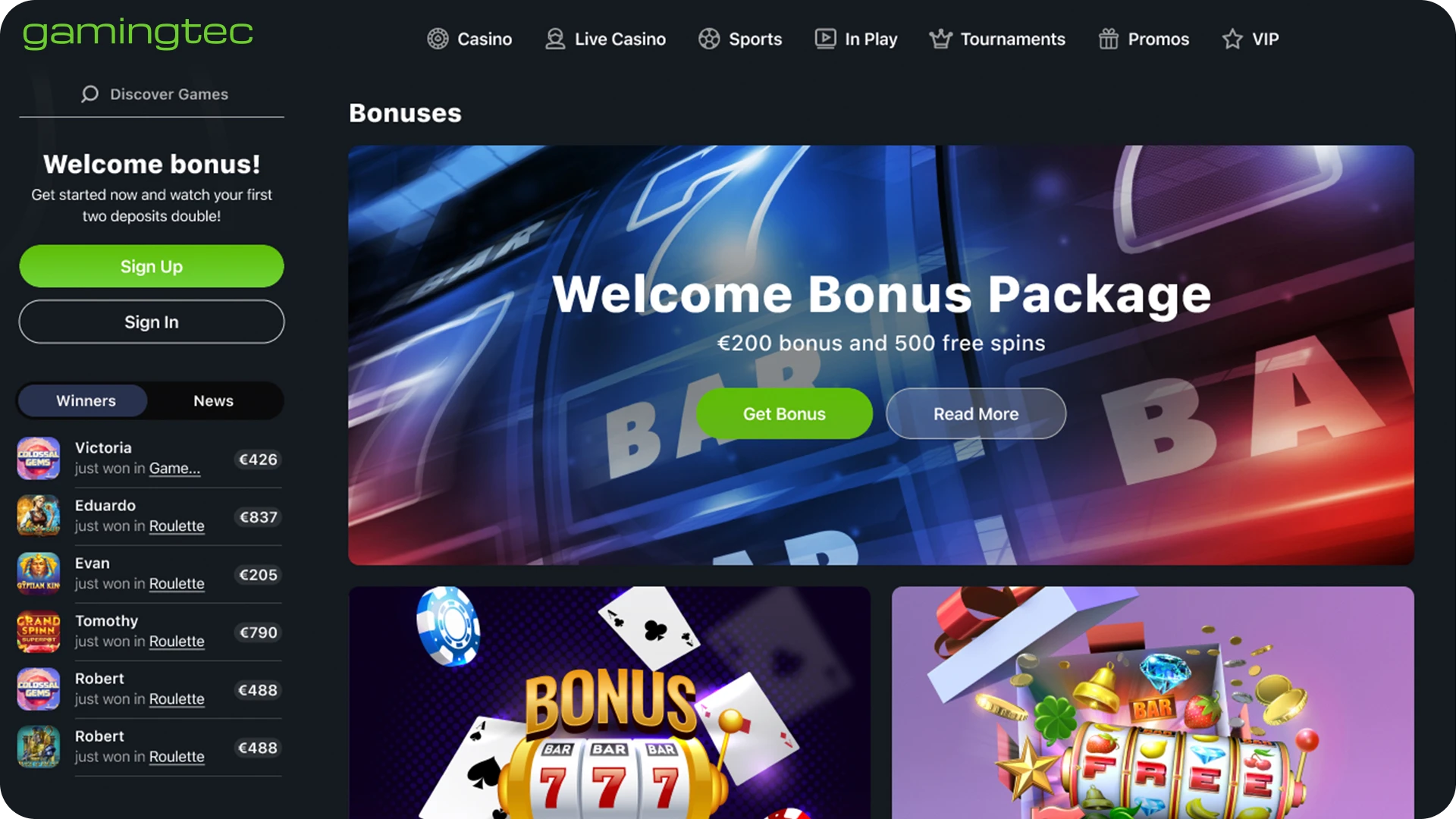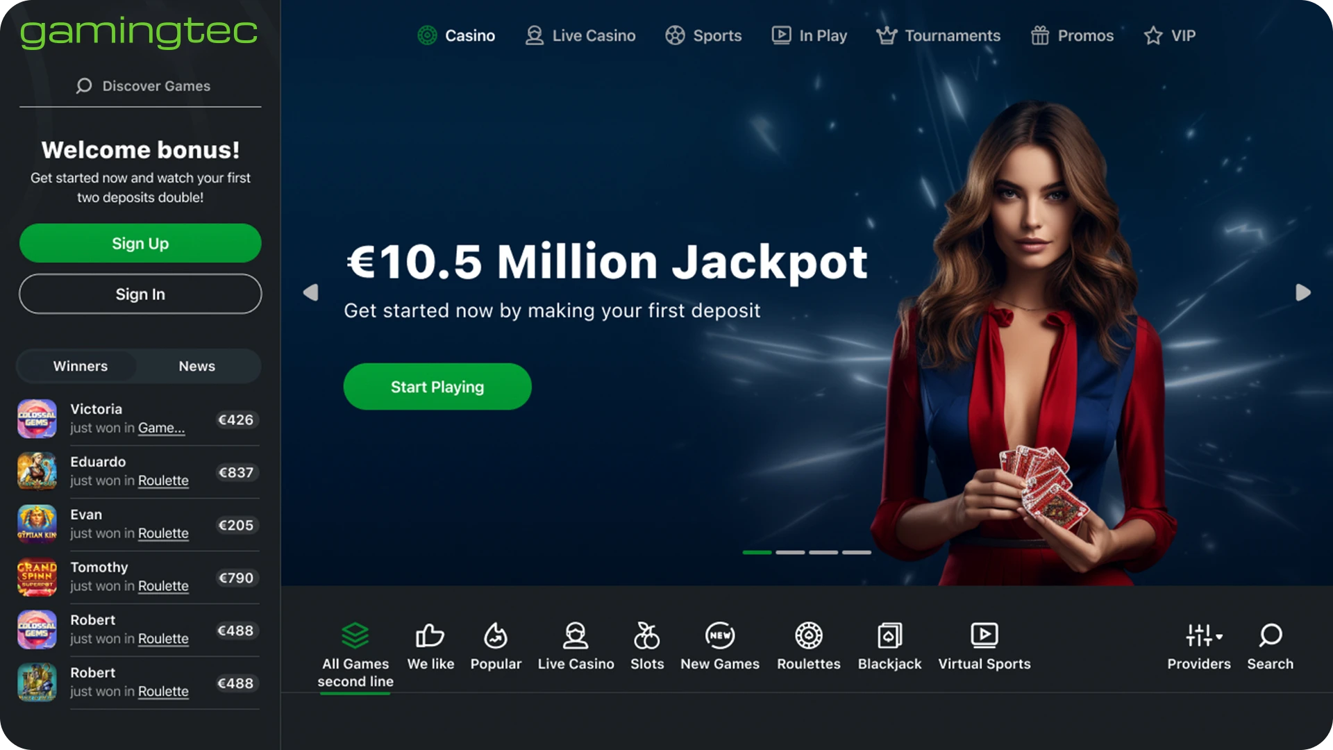 For those live casino lovers who occasionally like to try their luck in an experience reminiscent of the authentic setting, look no further than our Gamingtec Casino! With hundreds of games by the most reputable providers on the market, this service ensures hours of uninterrupted fun and piles of profit. It makes launching a casino easy, quick and fully customisable.
